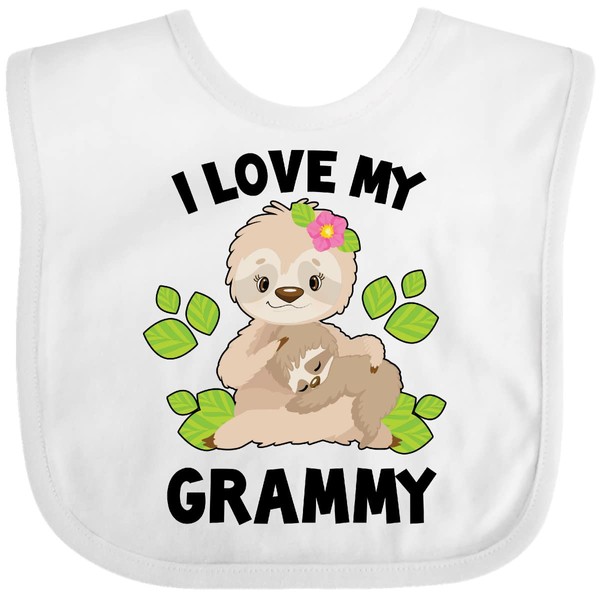 inktastic Cute Sloth I Love My Grammy with Green Leaves Baby Bib White 38270