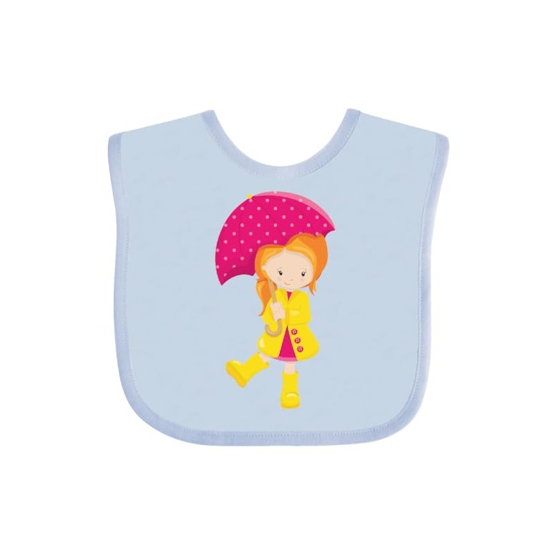 inktastic Girl in Raincoat, Girl with Umbrella, Orange Hair Baby Bib Light Blue 460b2