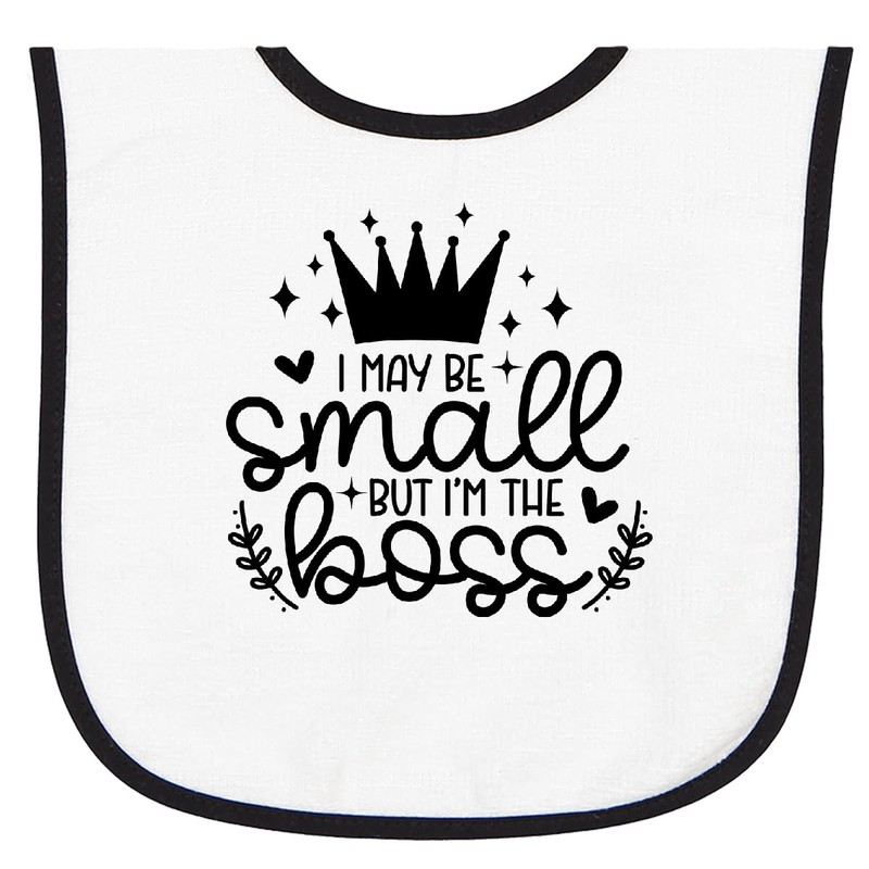 inktastic I May Be Small But I'm the Boss Baby Terry Cloth Bib White and Black 46a4b