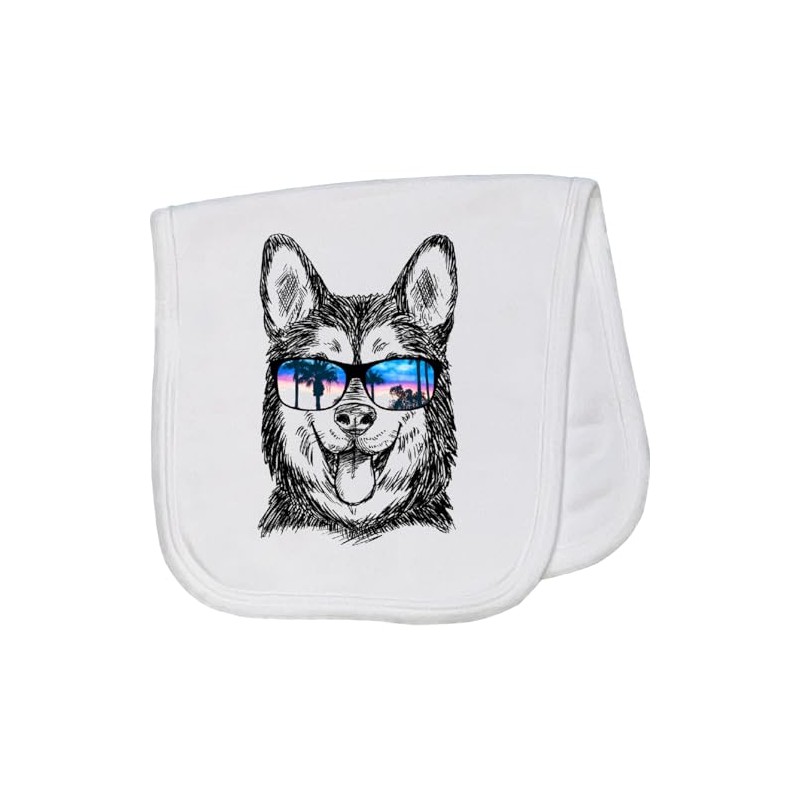 inktastic Siberian Husky Sketch Portrait with Sunglasses Baby Burp Cloth White 2a7d0