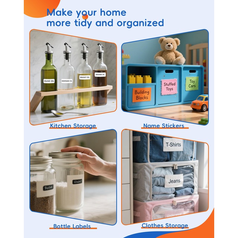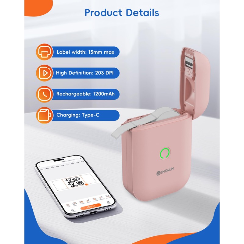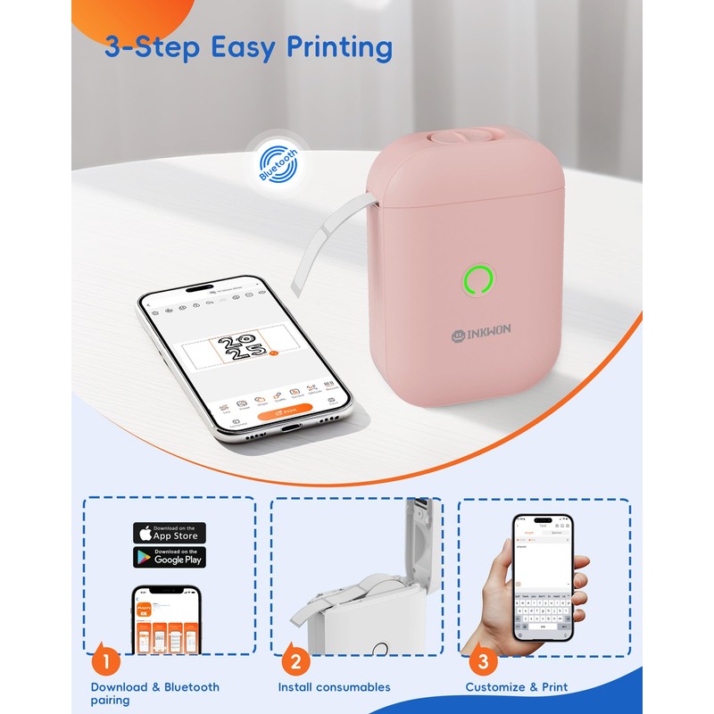 - Ideal for Homes & Office: InkWon label maker machine with tape perfect for organizing home items, office files, or classroom supplies—all with one compact device. Boost efficiency and aesthetics for a more streamlined life and workspace.(Note:This device only supports black printing. For colored labels, colored patterned label tapes must be used for printing.)