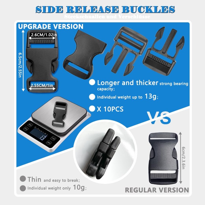 - About the robust buckle --- We have rejected the ordinary model - short and thin buckle clips, buckles and fasteners are made of robust ABS material, thickened and extended version, single buckle weight up to 13g, strong and durable. We chose the 4 most commonly used buckles for strapping DIY projects to form a set, with this set, you do not have to choose laboriously and compare the many different products on the market