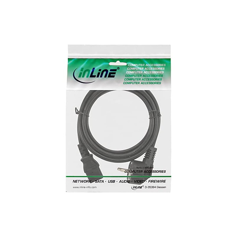 InLine 16647E Power Cable, Earthing Contact Angled to IEC Plug C13, 1 m