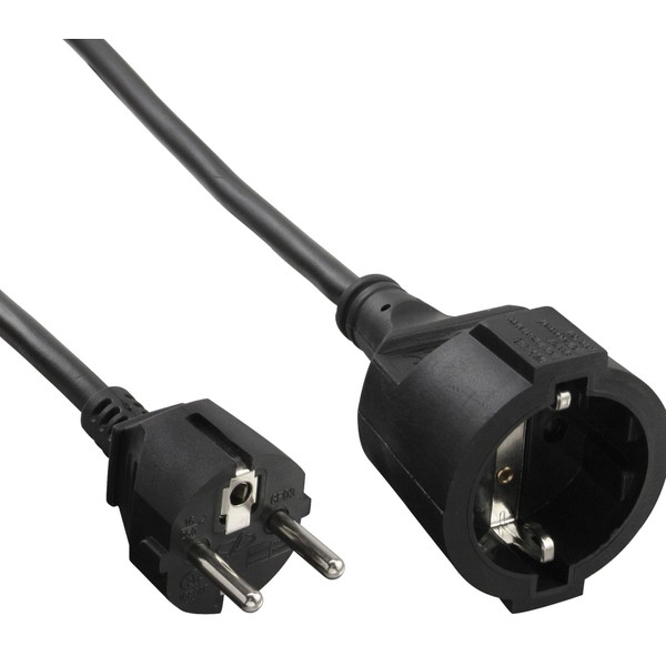 InLine® Power Extension Protective Contact Plug / Socket Black 1 m