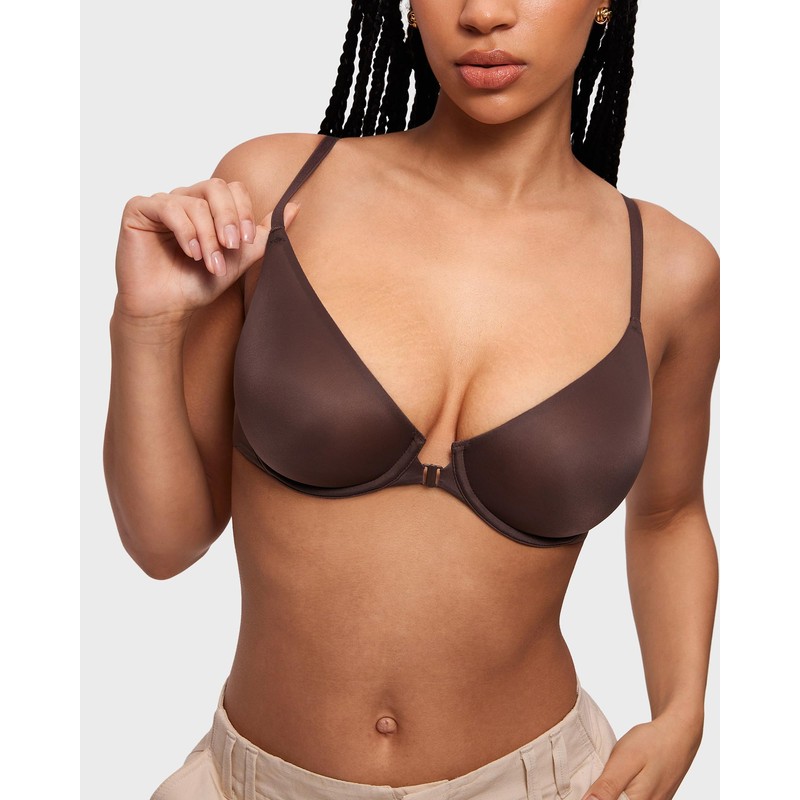 INLYRIC Women's Mesh Front Closure Bras Unlined Sheer Demi Plunge Supportive Comfortable Seamless Underwire Bra Hazelnut 34C
