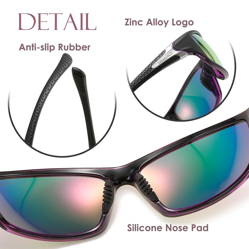 - 【HD POLARIZED & REVO LENSES】 The tinted lenses are composed of 7 layers of TAC material, not only guarding your eyes from wind or sand but also blocking UVA UVB UVC and harmful blue light to reduce your eye fatigue. These polarized glasses with anti-glare coating can eliminate the reflected or scattered light and restore the true color to return you a more natural and soft view.