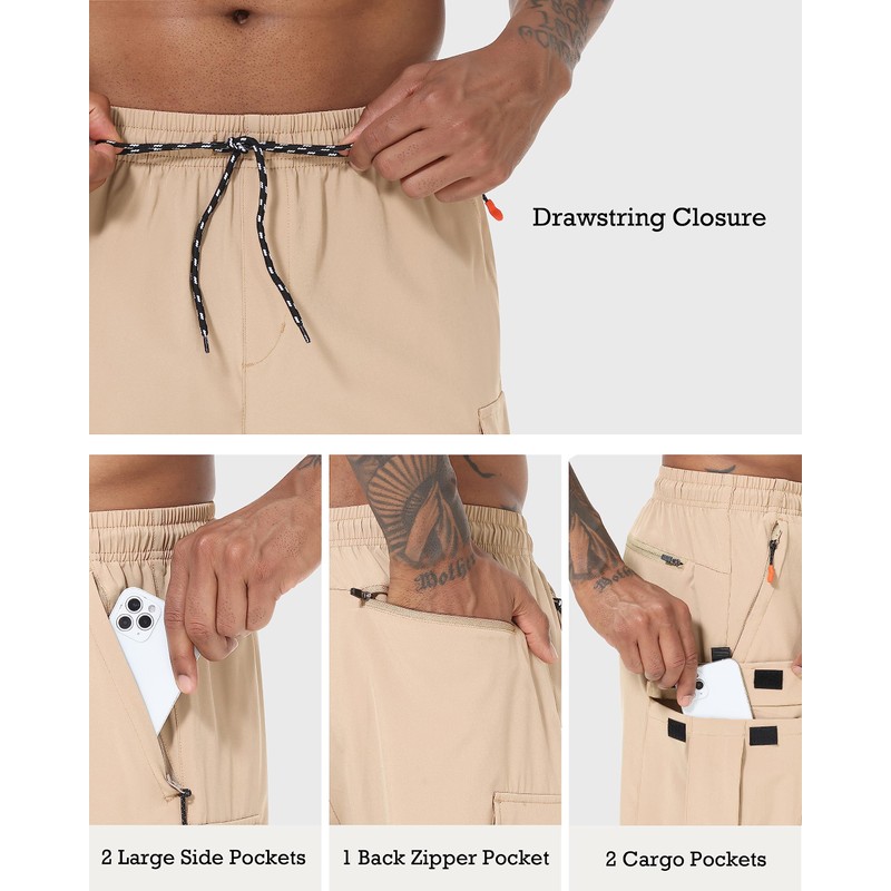 INNERBUT Men's Cargo Shorts Quick Dry Lightweight Stretch Hiking Shorts for Men with 5 Pockets No Lining Khaki