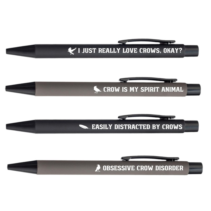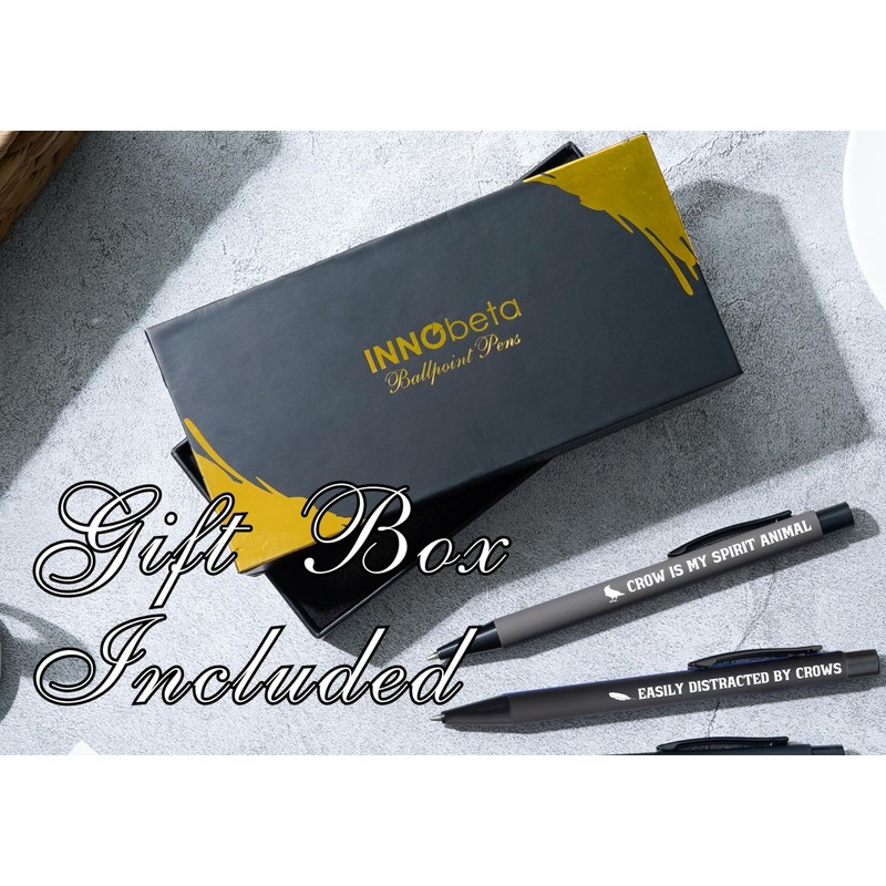 INNObeta Crow Gifts for Crow Lover, Ballpoint Pen Set of 4, Gifts for Crow Nerd on Birthday, Christmas and any Special Occasion