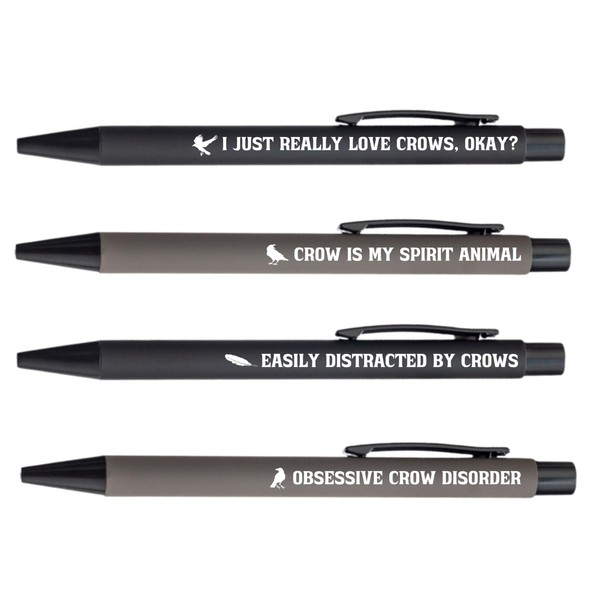 InnoBeta Crow Gifts for Crow Lover, Ballpoint Pen Set of 4, Gifts for Crow Nerd on Birthday, Christmas and any Special Occasion