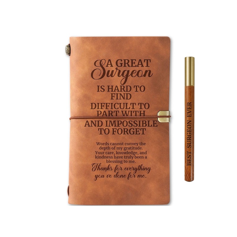 InnoBeta Surgeon Gifts, Journal Pen Set for Surgeons on Birthday, Christmas, Unique Notebook, Sketchbook, Travel Diary, Lined Planner, 7.8x5 Inches, Brown