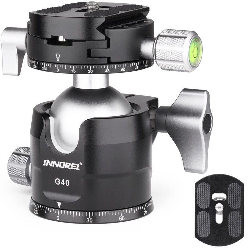 INNOREL Free Head Ball Head, Low Center of Gravity, Load Capacity up to 44.1 lbs (20 kg), Ball Head, Diameter 1.6 inches (40 mm), CNC Aluminum Alloy, Tripod, Monopod, SLR Photography, DSLR Camcorder,