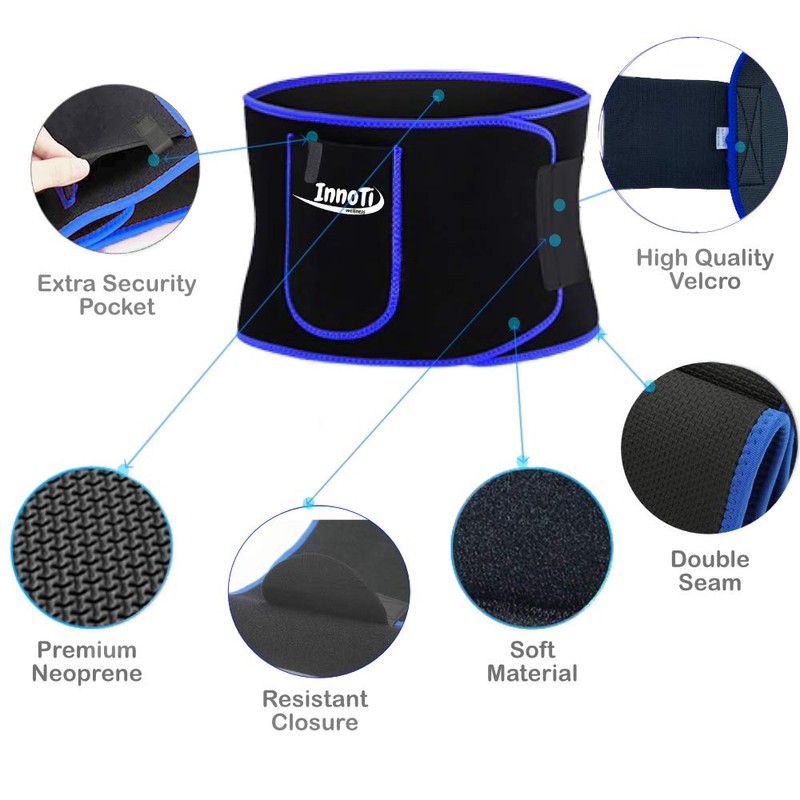- For all occasions: the 3.5 mm thick neoprene insulates so that body heat in the lumbar and abdominal area and thus the muscles are heated faster. It is ideal for use in the gym, running, walking, fitness training, Pilates or your favourite sport. Stay active and improve your figure with the InnoTi slimming belt for men and women