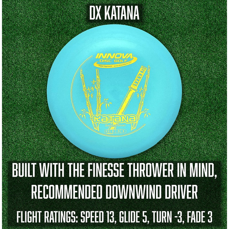 - DX KATANA – Reach for the Katana when you want fast, long and easy distance off the tee. Master the technique of Katana distance driver and rule the course. 170-175g. Colors Will Vary.