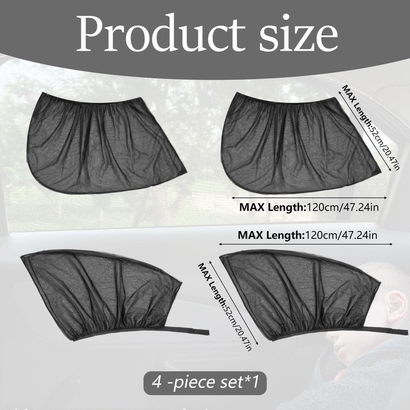 - Insect Protection & Ventilation Our car window sun shade provides comprehensive protection for young passengers and pets while driving. The mesh structure prevents dust, stones and insects from entering, but at the same time allows sufficient ventilation. Enjoy fresh air without worrying about sunburn or mosquito bites.
