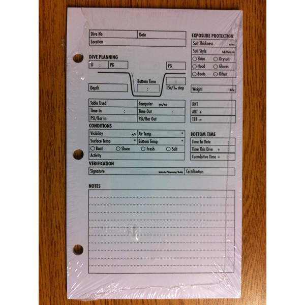 Innovative Scuba Concepts Standard Dive Log Book Refill Pages