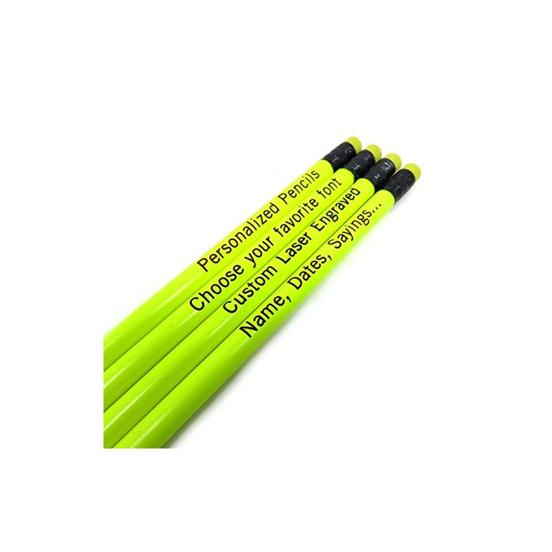 Innovative Surface Art Custom Engraved Wood Pencils - Set of 12-2HB Graphite - Personalized - Great Gift (Neon Yellow)