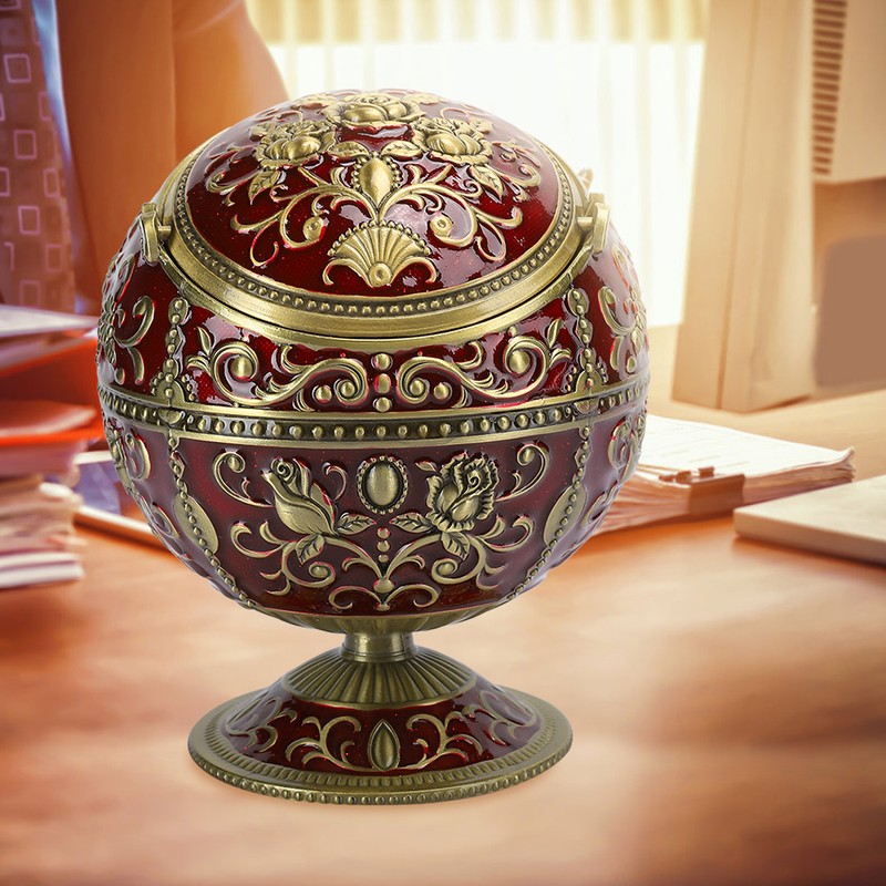 1、Zinc alloy material does not fade, does not oxidize, strong and wear-resistant, easy for cleaning. 2、The shape of a personalized globe, the three-dimensional eagle relief pattern, the unique retro style, is suitable for homes, hotels, high-end clubs and other places. 3、With innovetive ashtray designing, the cover can be opened and taken off, there is a cigarette holder behind the cover, it can be opened when it is single. 4、The product can be removed and used when there are many friends, it is simple and convenient, and it is cleaner without dust 5、As multifunctional pendulum decoration, the product can be used as ashtray, storage box or small trash box.