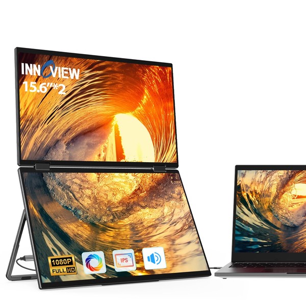 InnoView Laptop Screen Extender 15.6" Dual Monitors Stacked Folding Triple Monitor (Wins/Mac) 1080P Triple Portable Monitor for Laptop 90°/180° Automatic Rotation Black
