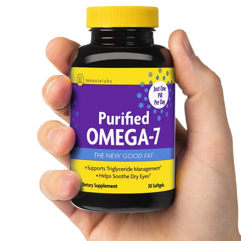 - Purified Omega-7: Helps maintain healthy levels of blood fats and C-reactive proteins, both important for healthy cardiovascular function. Omega-7 supports healthy triglyceride management. Each pill contains 210 mg Omega-7 Palmitoleic Acid in triglyceride form.*