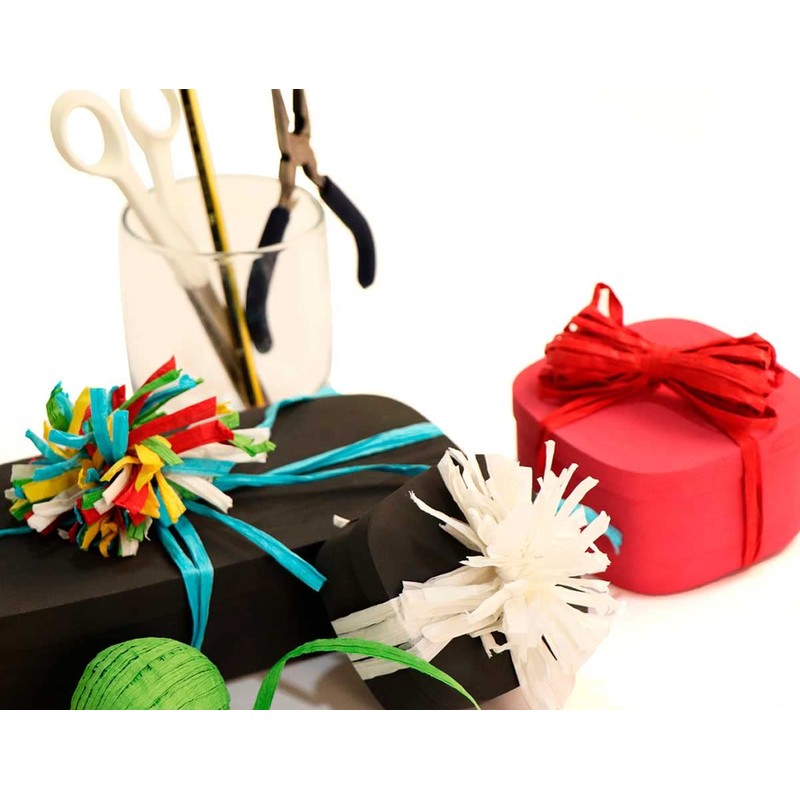 • Flat paper yarn for decorations and a touch of colour for the packaging