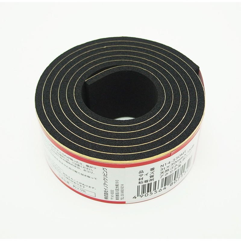 INOAC N14-330MT Natural Rubber Sponge Roll, Rubber Spo, 1.2 x 1.2 inches (3 x 30 x 1 m), Includes Tape, Black