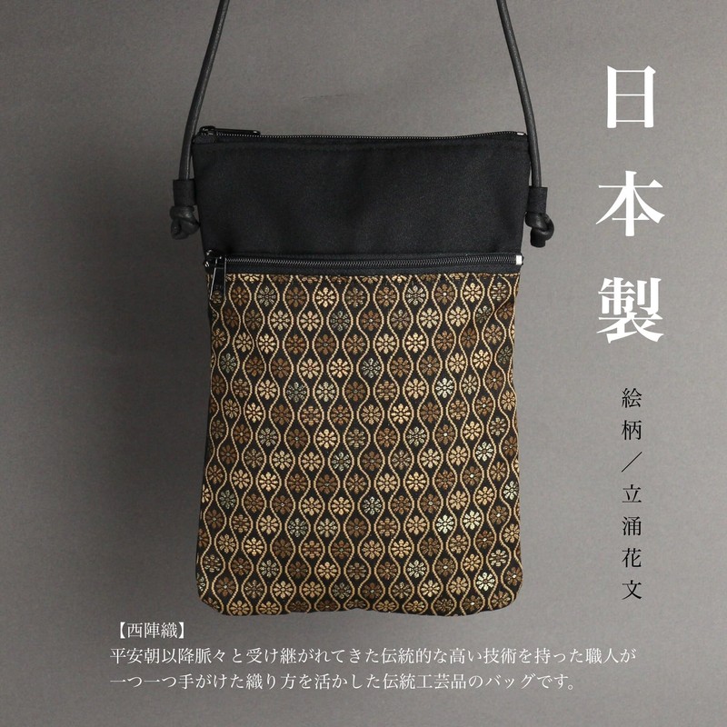 [Inokuchi Shojudo of Kyoto Fan] [Nishijin Textile] Tachyu Flower Pattern, Made in Japan, Kyoto Pure Silk Pochette, Sacoche, Black, Gold, Floral Pattern, Mini Bag, Shoulder Bag, Diagonal Bag, Diagonal