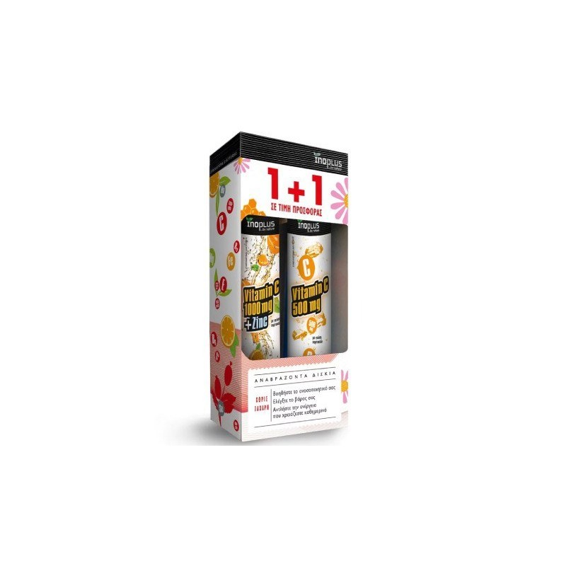 Inoplus 1+1 Inoplus Vitamin C 1000mg & Zinc, 20 Effervescent Tablets & Vitamin C 500mg, 20 Effervescent Tablets