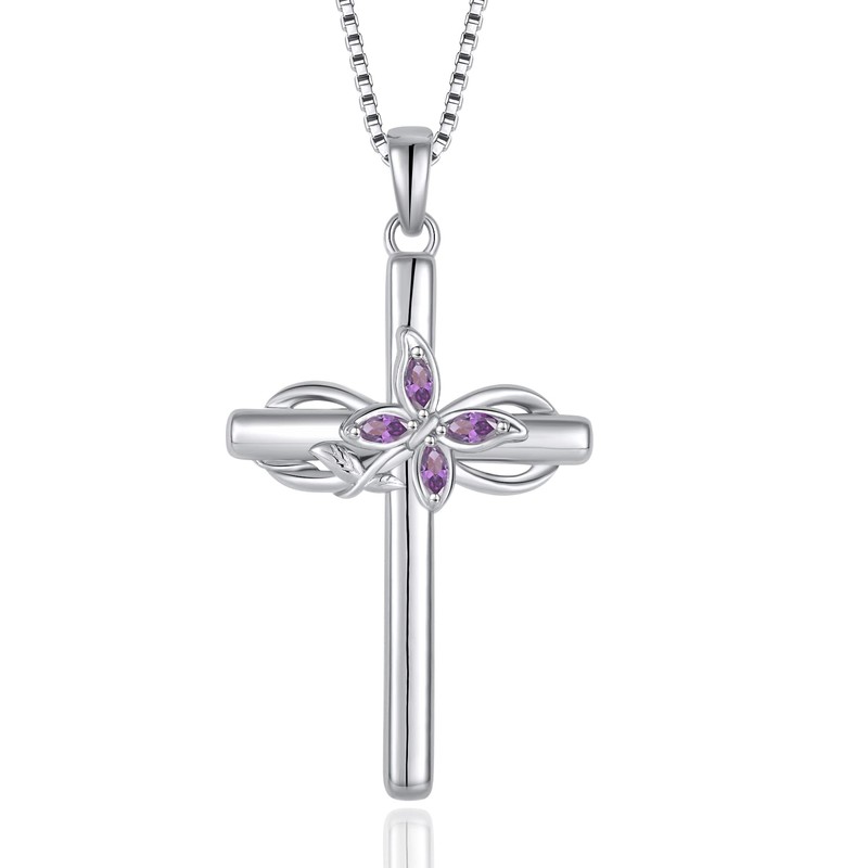 Inpasne Cross Necklace for Women 925 Sterling Silver Infinity Butterfly Cross Pendant Amethyst February Birthstone Jewelry Crucifix Religious Gifts for Her
