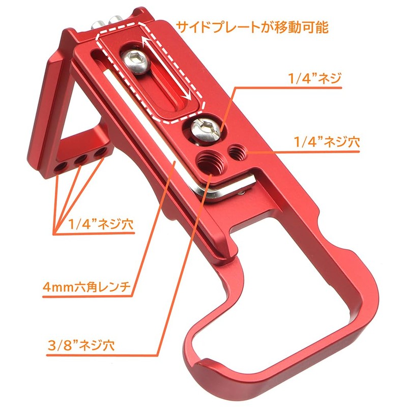 - Side plates are separate Allen wrench allows you to adjust the distance between side plate and camera body. When not in use, you can remove it with a hex wrench