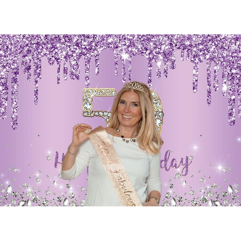INRUI Purple Happy 50th Birthday Photography Background Girls Sweet Fifty Years Old Birthday Party Decorations Backdrop 7x5FT