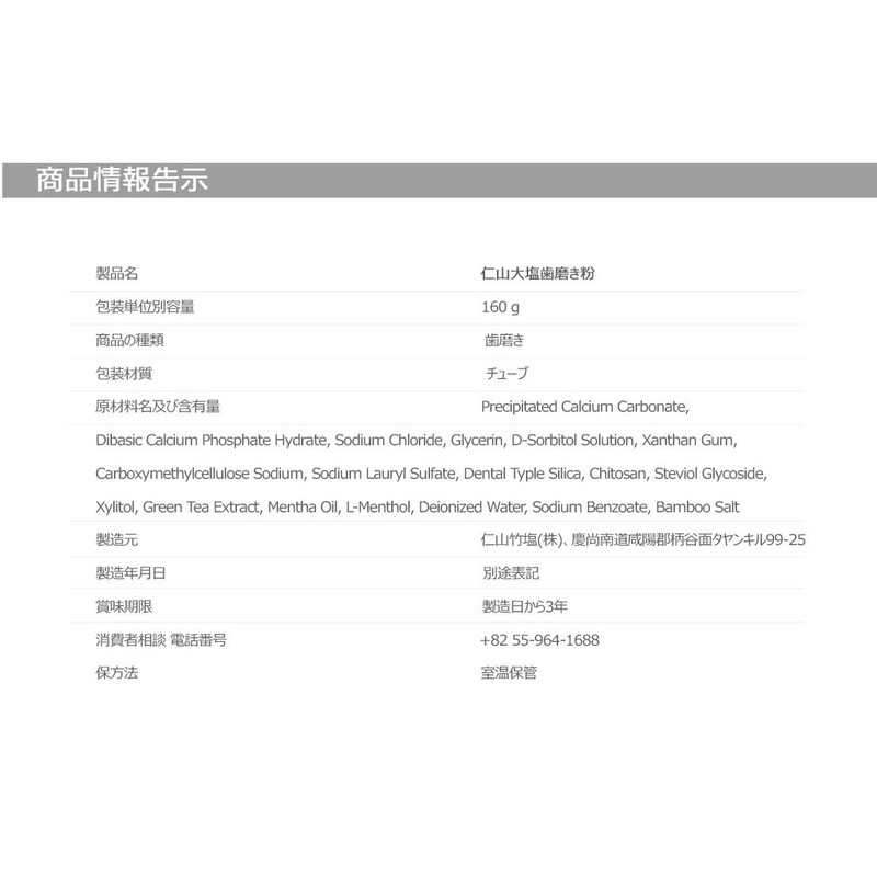 ■ 製品名: 仁山竹塩歯磨き粉