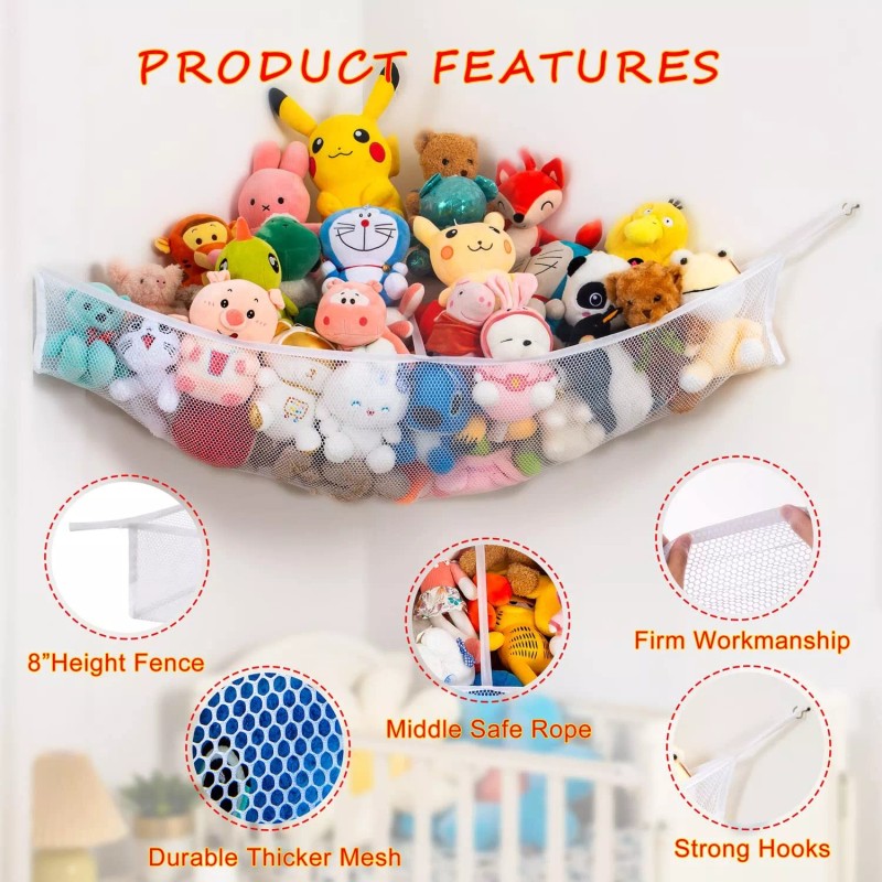 【Efficient Storage】This X-large-sized hammock has a load capacity of about 60 pcs of 8-12 inch stuffed animals, allowing you to declutter your space and keep your plushies neatly organized.