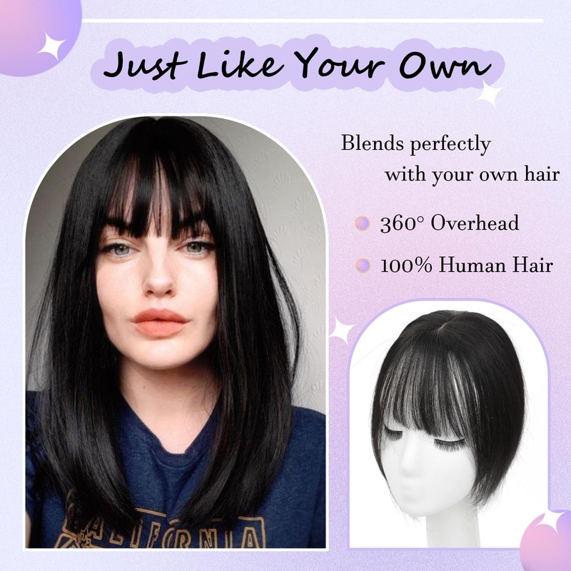 - Easy to wear: Quick wearing, save time. Our hair toppers for women with thinnin hair has 3 anti-slip clips to make it stable and firm to wear and add instant fullness to your top. Hair topper with bangs hair clip will boost your confidence instantly