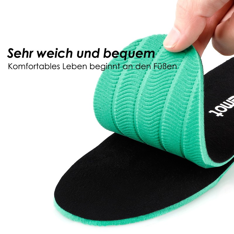- These insoles are made of 5 mm memory foam, which provides long time cushion and feet support, helps planter facilities and relieve foot pain. Activated carbon particles keep your feet dry and fresh all day.