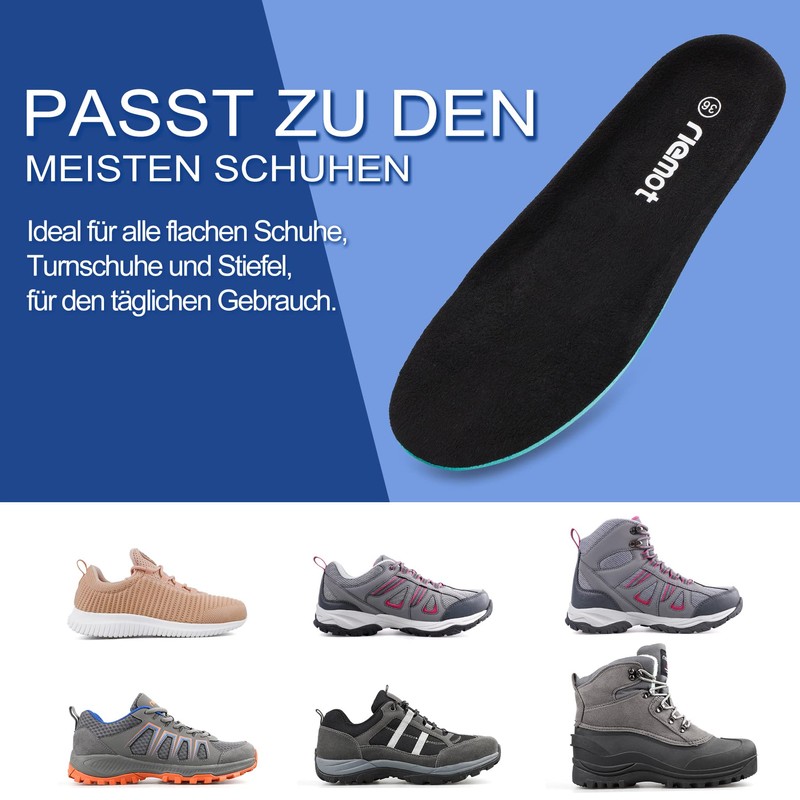 - Riemot Comfort insoles are an enormous help when working or standing, as the memory foam absorbs pressure on the legs. Shock absorbing insoles for long distances on foot, hiking or running.