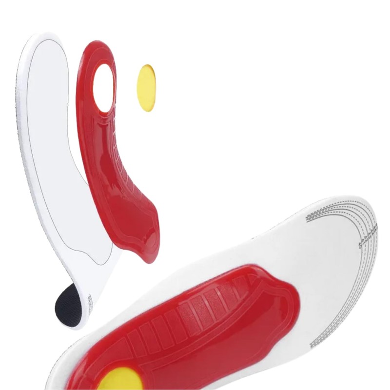 • Material: The bottom of the insole at the arch is made of high-quality nylon plastic, which gives the arch a great support, dispersing the feet arch pressure and reducing the pain of the arch.