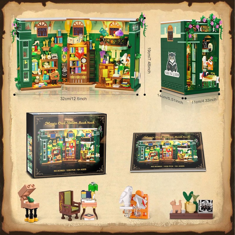 - Magic Owl Station Booknook Building Set - INSOON enchanted bookend building block kit bursts with fantastical colors, bringing to life the heart of the wizarding world's mail delivery. The magic owl station book nook building toy features mysterious letters, a letter-writing workbench, and three windows for owls to deliver mail. Each building brick narrates the story of the owls' daily postal adventures. Start your magical journey now