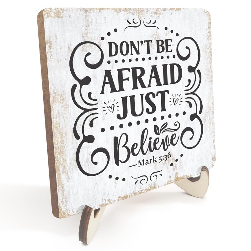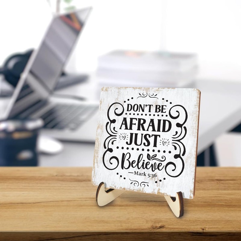 Inspirational Wood Sign Rustic Desk Decor Decorative Positive Christian Religious Bible Verse Faith Decoration for Home Farmhouse Office House Table Shelf Bathroom Wooden Plaque with Wood Stand