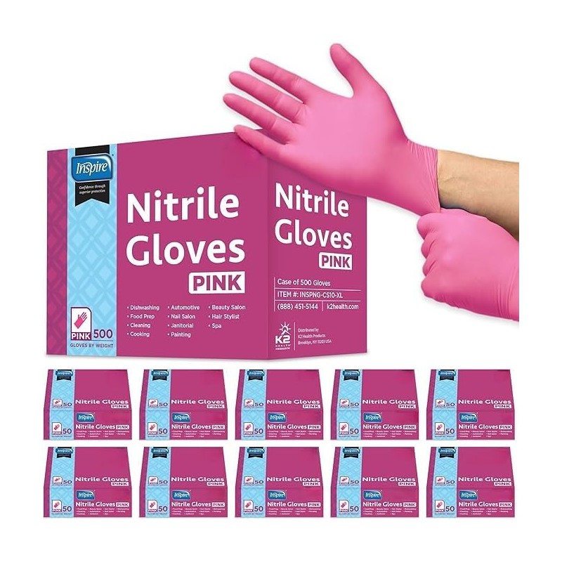 - STYLE AND SAFETY: Add a splash of color and show your personality. Inspire Pink Gloves are made from nitrile offering great protection and is a perfect alternative for those who are sensitive to latex gloves and rubber gloves. Durable nitrile pink disposable gloves for a comfortable fit and snug grip.
