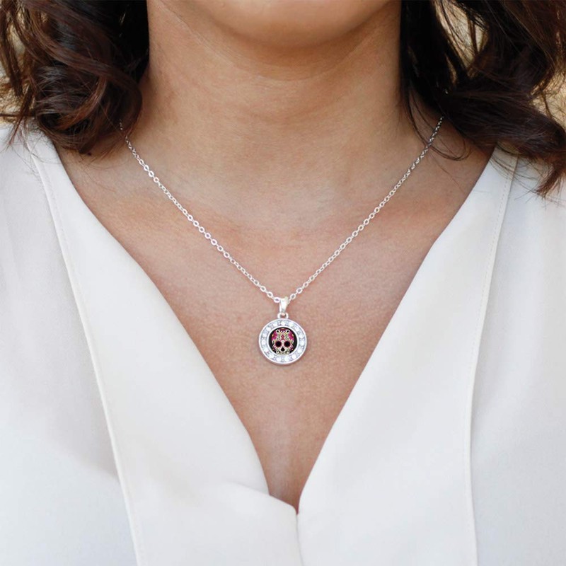 Inspired Silver - Sugar Skull - Silver Necklace for Women - Circle Pendant Chain Necklace Jewelry Gift with Cubic Zirconia - Women's Necklace Charm with Lobster Claw Clasp