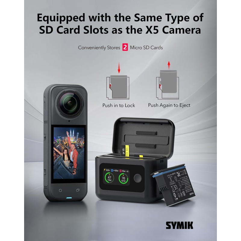 - Intelligent 5 in 1 Battery Charger for Insta360 X5: 27W Dual Channel Fast Charging Case, 10W Output Power Source, Battery Accumulation Device, Battery Even Out Equalizer and Battery Storage Case 5 functions in one device
