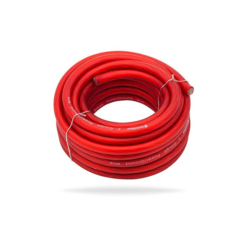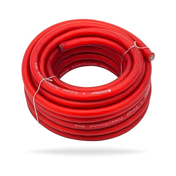 - 25-FEET (7.62m) [ RED 4 GAUGE POWER/GROUND WIRE ] - The lower the gauge number, the thicker the wire. Thicker wire presents less resistance to current flow.