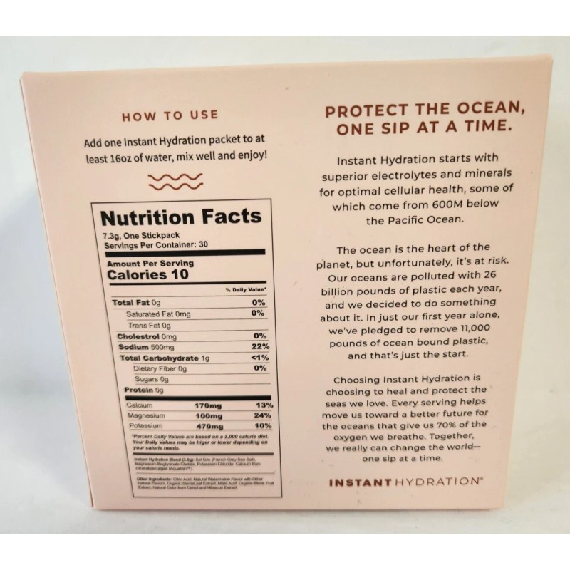 Instant Hydration Electrolyte Watermelon Flavor Drink Mix 30 Stick Packs 02/2027