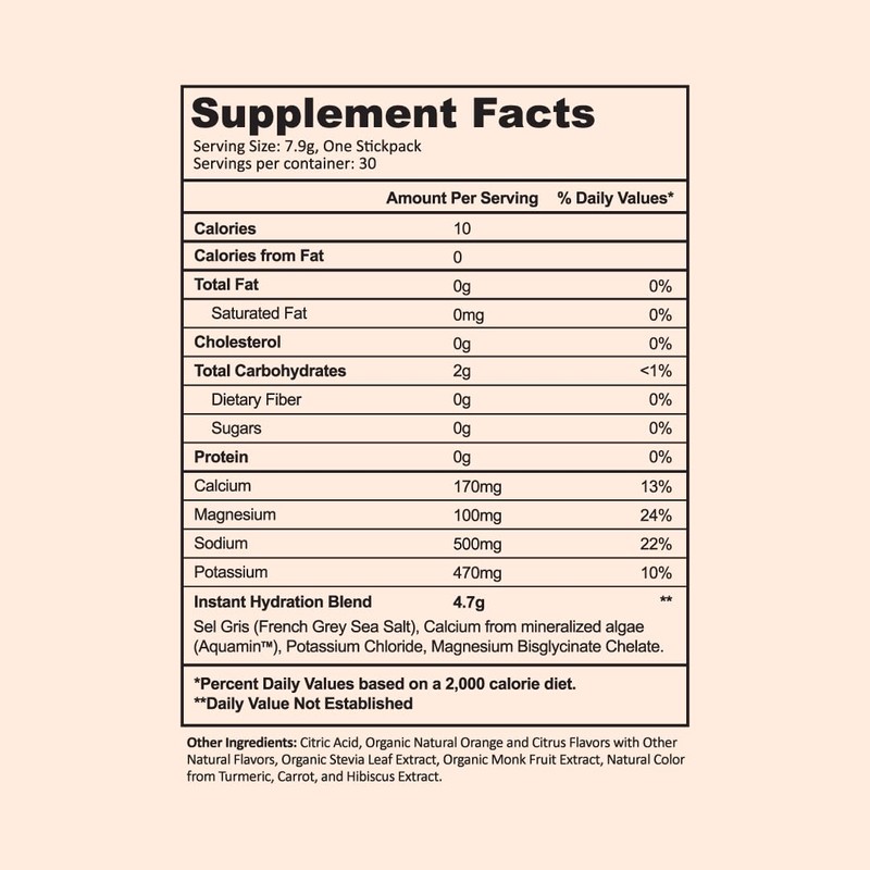 Instant Hydration Electrolytes Powder Packets - Citrus Orange Drink Mix - Zero Sugar - Keto, Vegan, Gluten-Free, Non-GMO - Boost Recovery, Brain Health, Muscle & Tissue Support- 30 Sticks