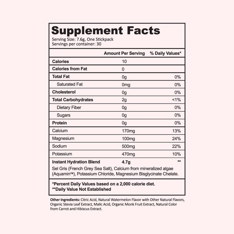 Instant Hydration Electrolytes Powder Packets - Watermelon Electrolyte Drink Mix - Zero Sugar - Keto, Vegan, Gluten-Free, Non-GMO - Boost Recovery, Brain Health, Muscle & Tissue Support- 30 Sticks