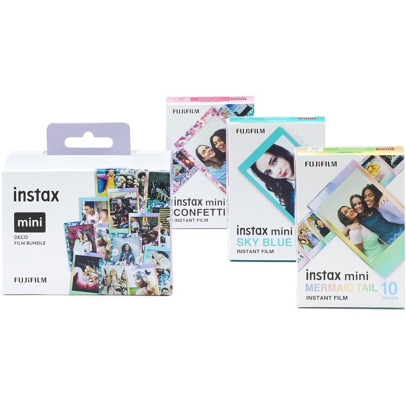 INSTAX Mini Film Pack of 3 with Confetti, Blue & Mermaid Frame