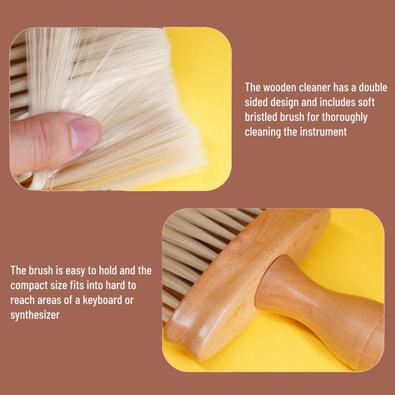 - DOUBLE SIDED CLEANING: the wood cleaner has a double-sided design and features a brush with soft bristles for thorough cleaning of the instrument