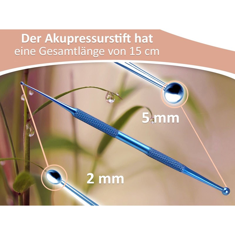 - Acupressure pen with 2 different ball ends. Ball size 2mm and 5mm For precise massage at home. Relaxation made easy. The massage pen is a real solver, it helps you relax and feel comfortable.