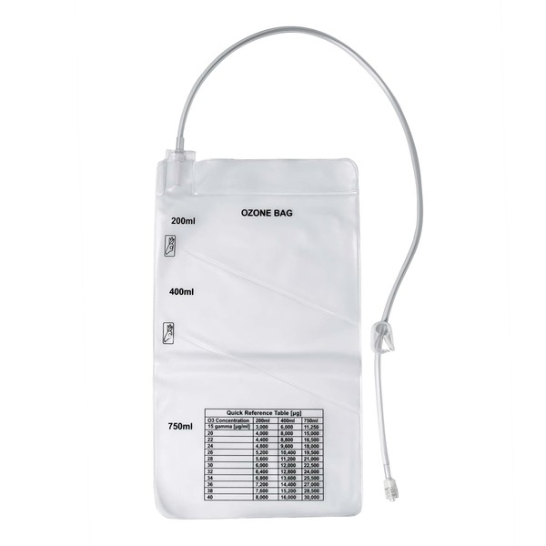 - Multiple Chambers: Features 3 chambers within the same bag, providing users with options to select and administer ozone volumes of 200mL, 400mL, or 750mL according to their treatment requirements.