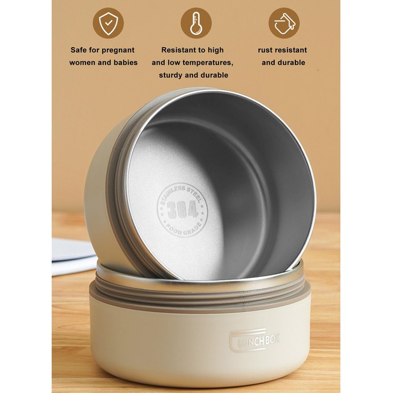 Insulated 304 Stainless Steel Lunch Container with Thermal Bag, Sealed Lunch Containers for Food, Multifunctional, Portable, Round, Thermal Bento Box (Beige)
